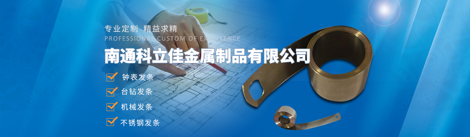 南通科立佳金屬制品有限公司(海門海南發(fā)條廠)建于1995年。現(xiàn)有職工人數(shù)50多人是專業(yè)生產(chǎn)多品種花式發(fā)條的骨干企業(yè),年生產(chǎn)能力500萬條,單品生產(chǎn)在100萬條以上。主要產(chǎn)品為鐘表發(fā)條、臺鉆發(fā)條、機械發(fā)條、不銹鋼發(fā)條、小型發(fā)動機起動發(fā)條、電刷彈簧、精良木工帶鋸、 精良裁布鋼帶和彈簧帶鋼類的各色制品制件。產(chǎn)品行銷全國20多個省、市、自治區(qū)。同上海正峰公司、美國百得楊州電動工具分公司、朝鮮自治區(qū)延邊龍川公司結(jié)為長期伙伴關系......